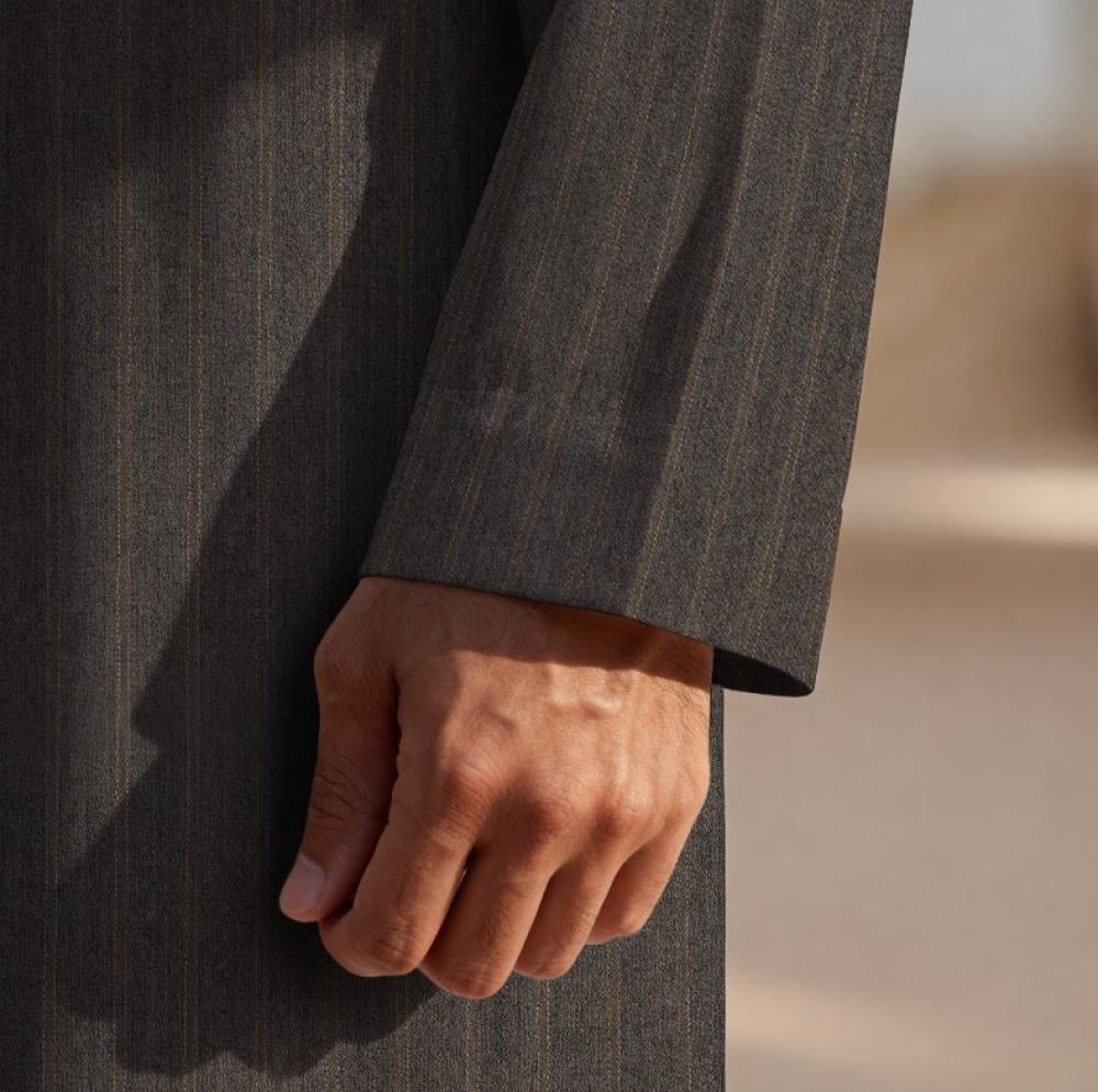قماش صوف كمشير انجليزي شتوي صوف فاخر بقياس 3.5متر (100% صوف سوبر 120). عرض 150 سم، وزن 290 جم/م²، نقشة مقلمة أنيقة. يغسل بالبخارفقط، كي منخفض.