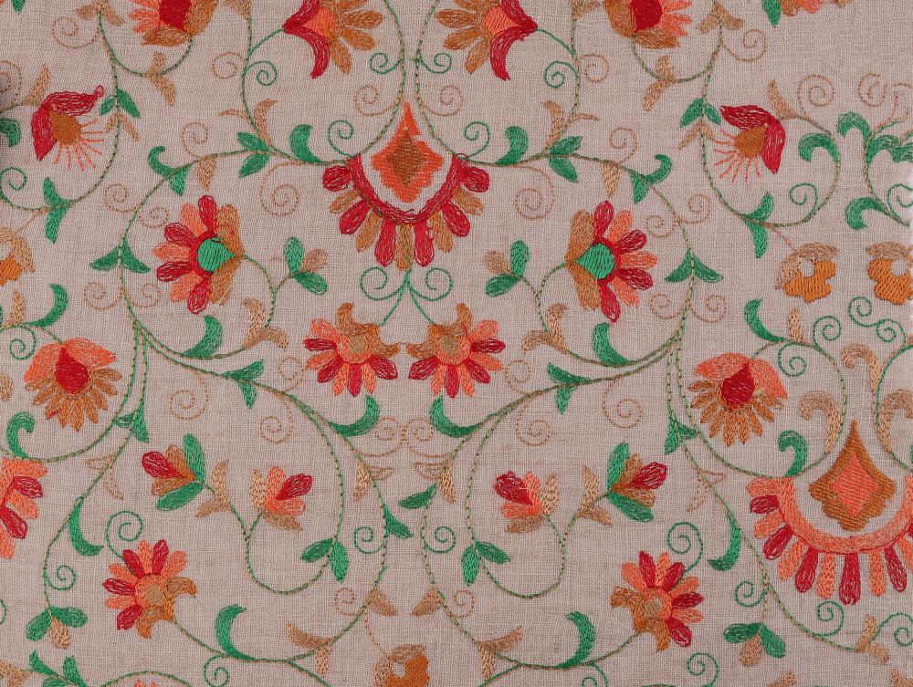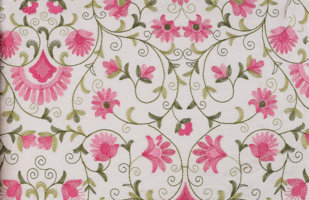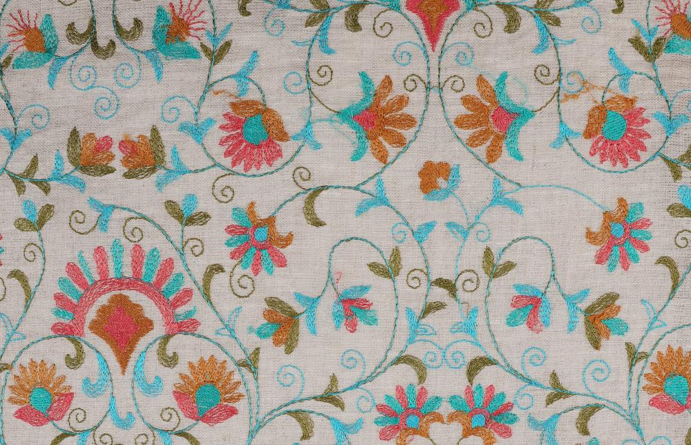 قماش لينن مطرز ورد- C7978 الهند